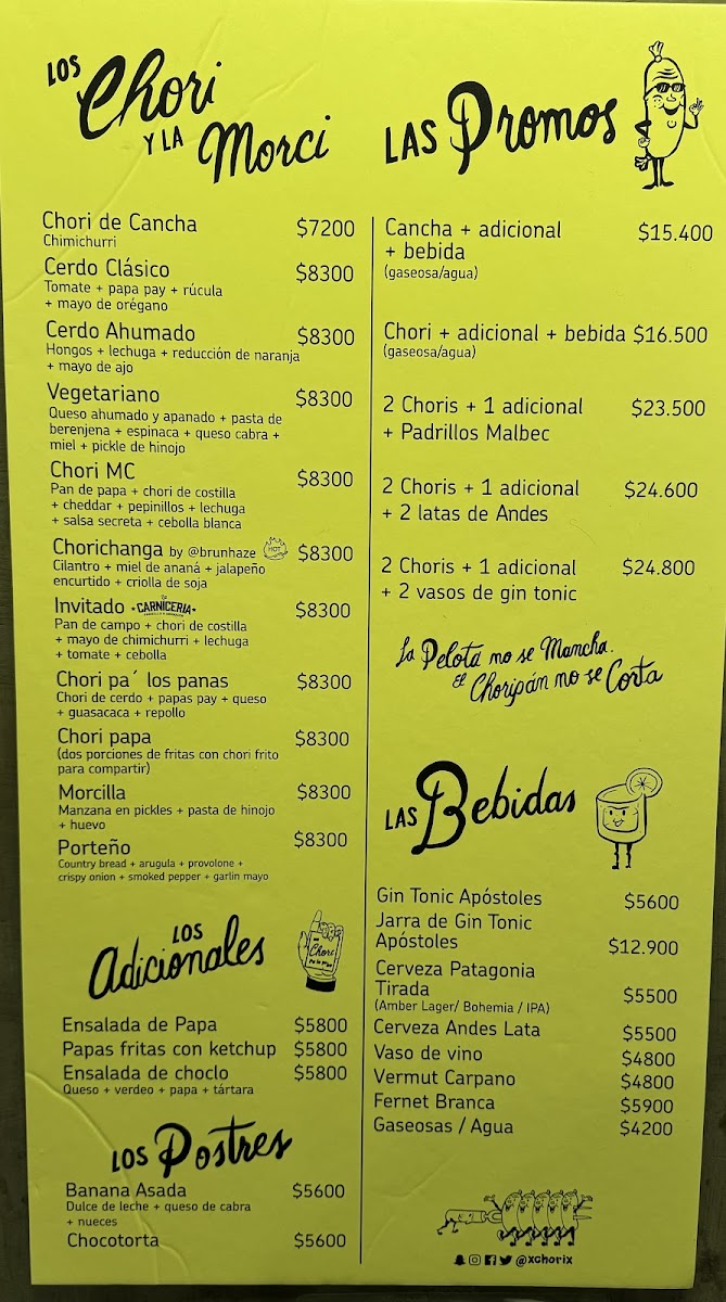 Welcome to Chori, a must-visit gem in the heart of Palermo, Buenos Aires. At Chori, you'll discover a gourmet twist on the traditional choripán, featuring tantalizing chorizo on a bun that transcends typical street food. Diners rave about the variety of flavors, with each chorizo offering a unique tasting experience—something our customer Angel L describes as life-changing.